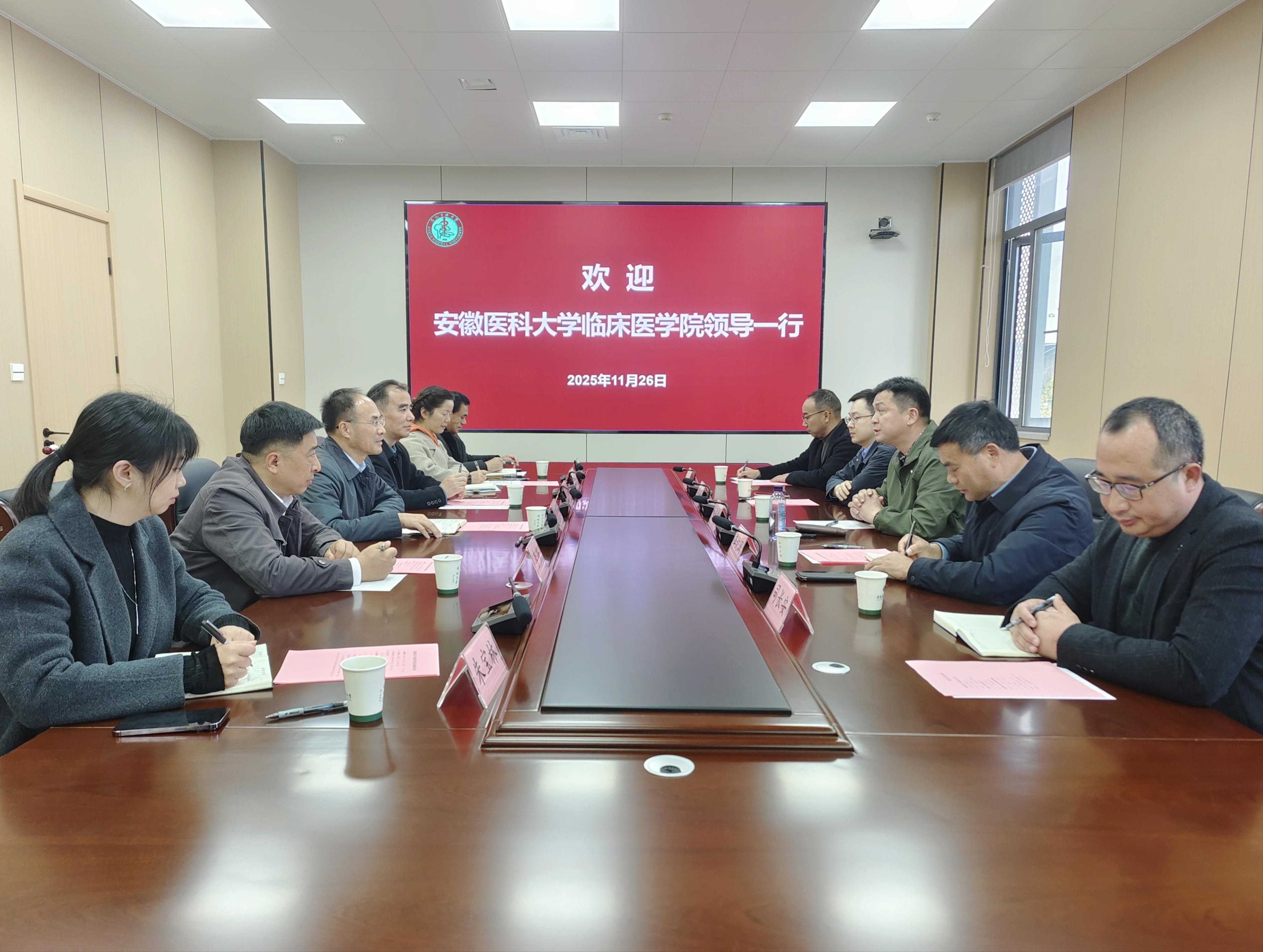 安医大临床医学院后勤处及餐饮公司负责人,学校后勤保障部餐饮、宿管、商贸等中心负责人参加调研。双方围绕餐饮服务保障、校园商贸运营、学生公寓管理、新校区规划建设等事项展开深入交流。
