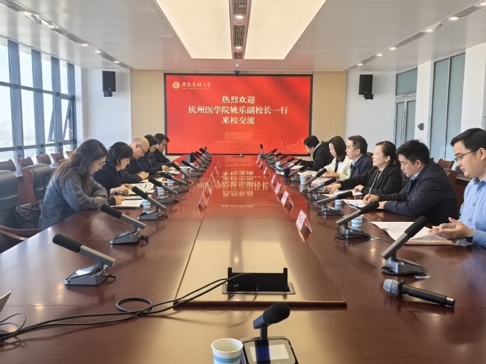 11月28日,杭州医学院副校长姚乐带队来校调研交流,校党委常委、副校长吕雄文出席会议并讲话。