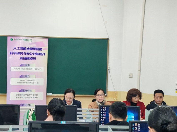 11月29日至30日,由教务处(实验教学中心)指导、医学人文学院与继续教育学院联合举办的“人工智能大模型赋能科学研究与办公效能提升”高级研修班在梅山路校区举行。继续教育学院直属党支部书记、院长刘从云,医学人文学院副院长杨优出席会议。开班式由继续教育学院副院长吴红燕主持。