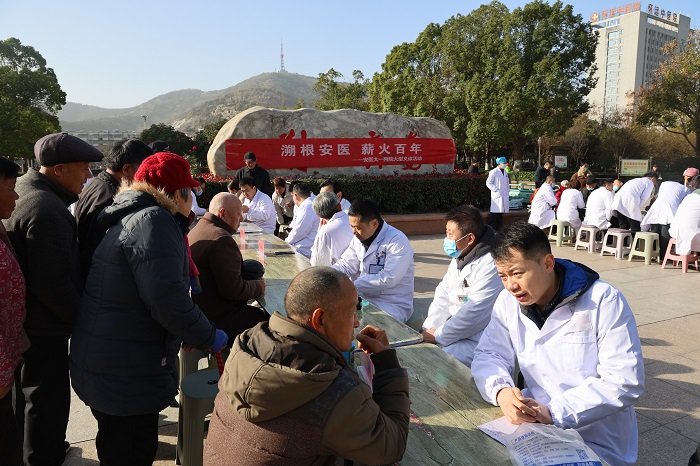 活动期间,来自第一附属医院普外科、骨科、耳鼻喉科、烧伤科、急诊外科、重症医学科、疼痛科、口腔科、老年医学科、肿瘤内科、皮肤科的12位怀远籍临床专家,在怀远县荆山广场开展了“溯根安医 薪火百年”义诊活动。专家团队还分批前往怀远县人民医院、怀远县中医院,开展教学查房、疑难病例讨论,并就学科发展与相关负责人进行深度研讨。专家一致表示,将以先辈为榜样,以百年安医精神为指引,把传承红色基因与践行医者使命相结合,充分发挥自身专业优势,以实际行动彰显安医人的责任担当。