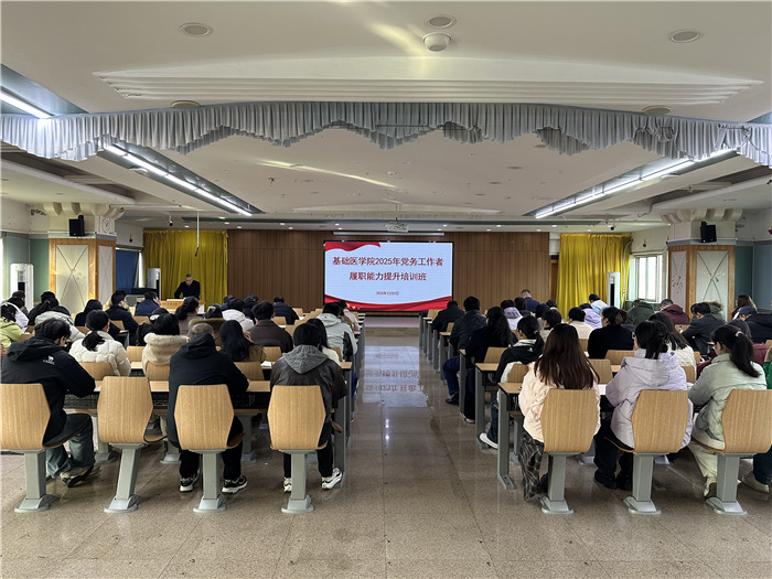 日前,基础医学院举办党务工作者履职能力提升培训班,提升学院党务工作者专业化能力和履职水平。校党委常委、宣传部部长秦楠围绕高校意识形态工作,为培训班授课。