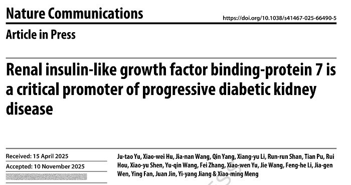 该研究不仅揭示了IGFBP7在DKD中的关键致病作用,还提出了靶向IGFBP7的新策略,为开发基于肾小管保护的DKD治疗方案提供了重要科学依据。