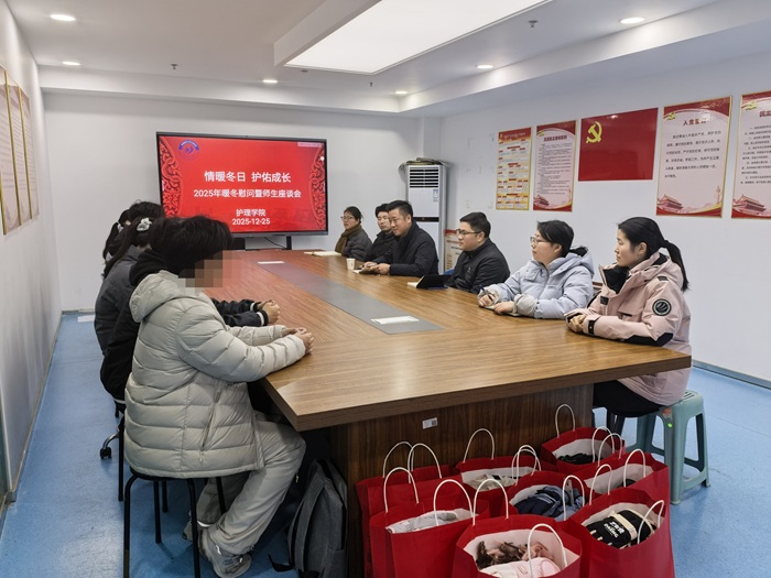 凛冬已至,温情不减。12月25日下午,护理学院开展“情暖冬日,护佑成长”2025年暖冬慰问暨师生座谈会,为部分学生代表送去冬日关怀与成长指引。学院党委书记薛磊、党委副书记王磊参加活动。