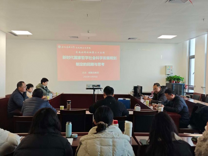 12月26日,马克思主义学院举办第25期东南社科论坛,邀请中国人民大学中共党史党建学院储著武教授作学术报告,解读国家哲学社会科学规划的演进逻辑、核心要义与未来方向。