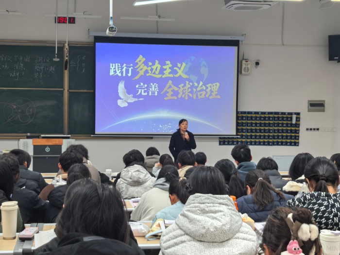 12月28日晚,校党委常委、组织部部长李震静以“践行多边主义,完善全球治理”为题,为2025级本科生讲授了一堂兼具理论深度与现实意义的“形势与政策”课。