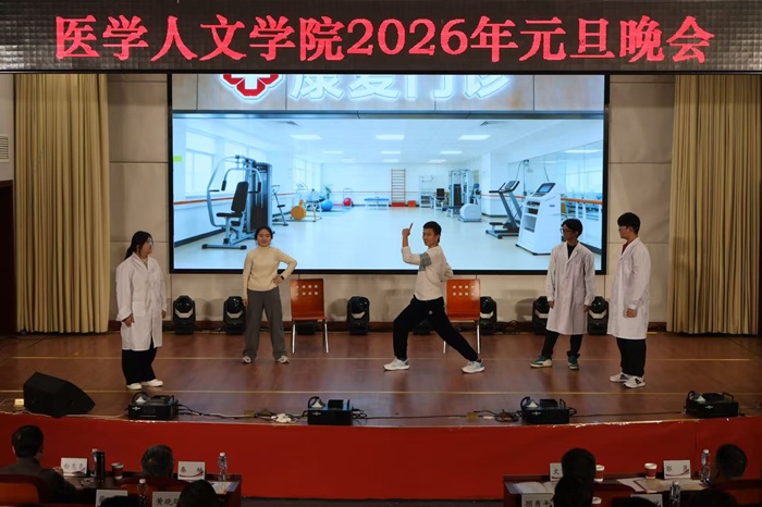 12月30日晚,医学人文学院举办“展青春激昂风采,绘人文锦绣未来”元旦晚会。