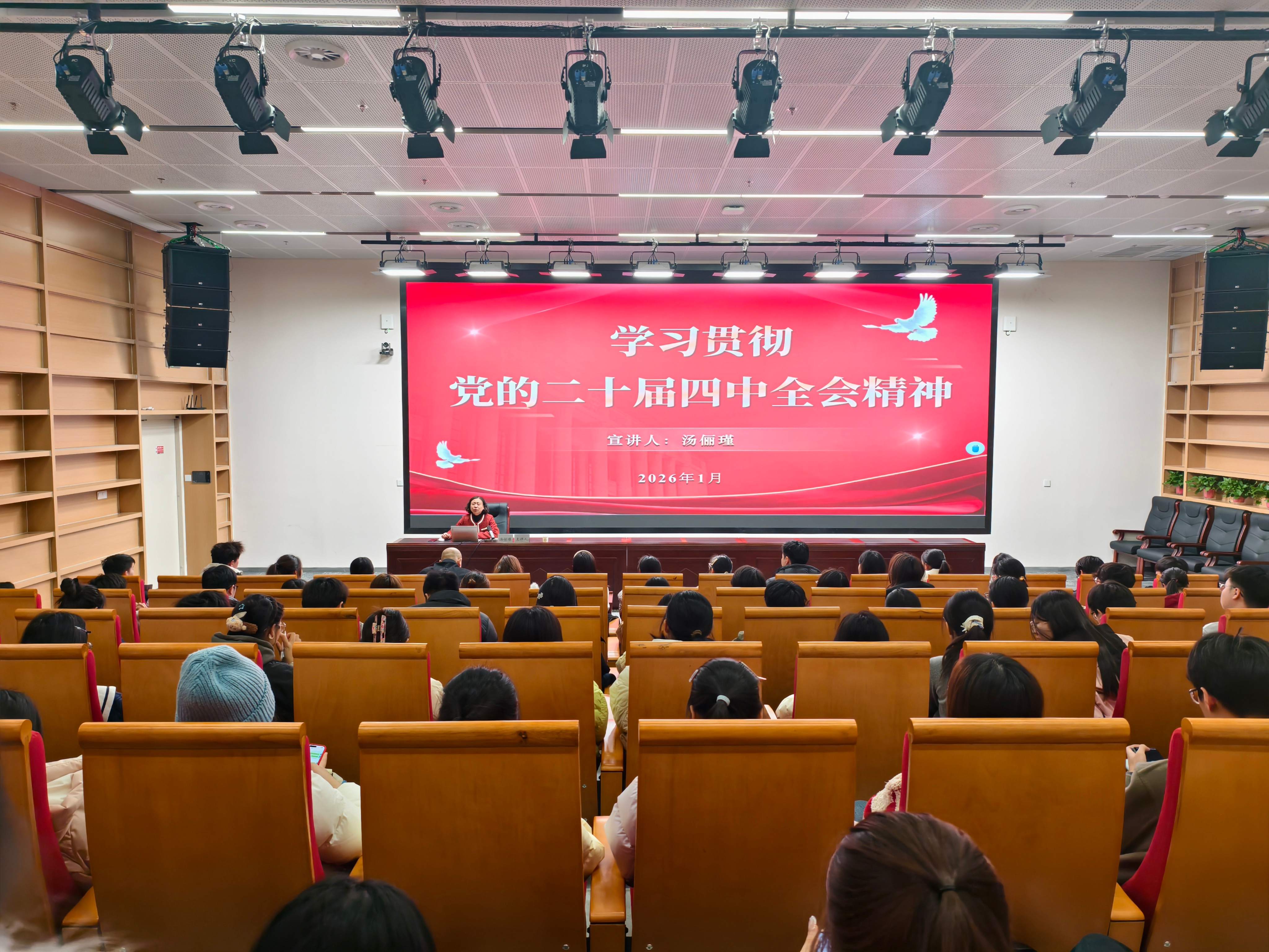 汤俪瑾围绕党的二十届四中全会精神,全面解读“十四五”时期我国取得的重大成就,深入领会“十五五”时期经济社会发展指导方针、主要目标,战略任务和重大举措。与会人员一致认为,专题辅导报告逻辑清晰、内涵丰富、针对性强,为进一步学习领会党的二十届四中全会精神提供了有力指导。今后将把学习成果转化为学习的强大动力,坚定理想信念,锤炼过硬本领,为推动学校高质量发展贡献智慧和力量。本次专题讲座是我校持续深化党的创新理论武装、筑牢师生思想根基的重要举措。