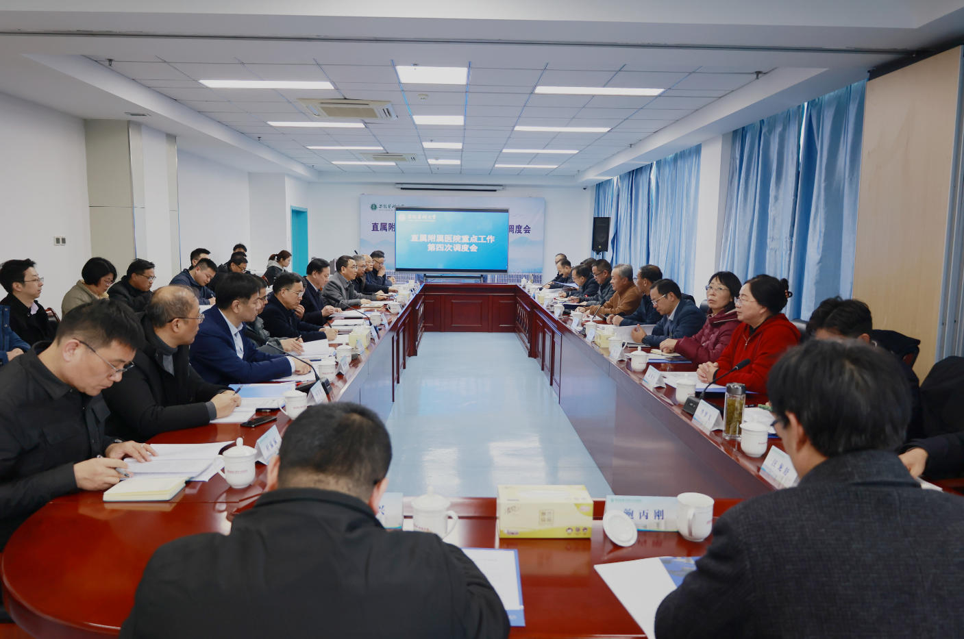 学校相关职能部门主要负责人,各直属附属医院班子成员及相关职能科室主要负责人参加会议。(校办公室/文 第四附属医院/图)