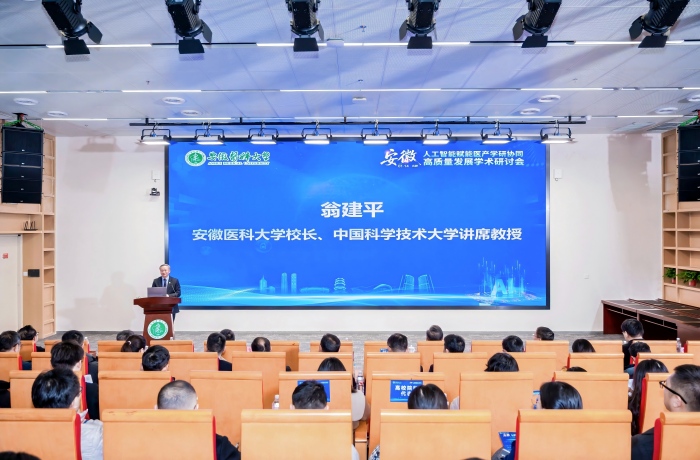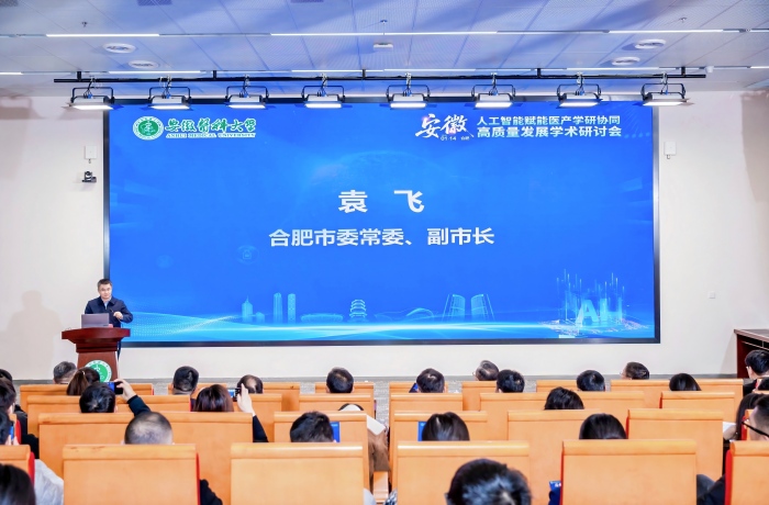 1月14日上午,学校联合中国临床研究共同体、国际先进技术应用推进中心(合肥)共同举办人工智能赋能医产学研协同高质量发展学术研讨会。校长翁建平,合肥市委常委、副市长袁飞,中国临床研究共同体召集人兼秘书长韩文欣等参加会议。
