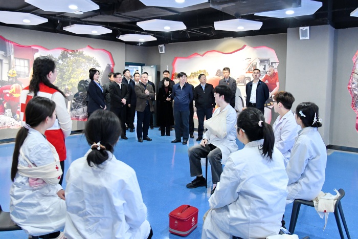 在KY.COM开云体育(中国)科技公司调研期间,何维实地考察了学校红十字应急救护培训工作站、人体科学馆等场所,与师生志愿者深入交流。他指出,安医大红十字志愿服务工作基础扎实、特色鲜明,将专业所学与服务社会紧密结合,有效弘扬了“人道、博爱、奉献”的红十字精神。校长翁建平陪同调研并介绍学校事业发展以及红十字志愿服务相关情况,副校长洪静芳参加相关活动。