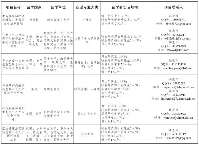 我校中新慢性病护理创新型人才国际合作培养计划等6个项目先后获国家留学基金管理委员会(简称“留基委”)创新型人才国际合作培养项目(简称“创新项目”)立项资助。创新项目旨在加大对一流大学和一流学科建设的支持,进一步推动国内外合作培养创新型国际化人才。现启动我校2026年创新项目第一批候选人遴选工作,具体通知如下: