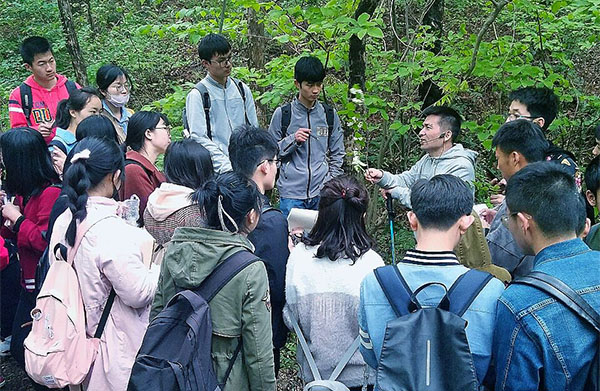 谢晋寓教于乐,将课堂移到大自然,行走教学,一方面引导学生识别药用植物的种、属、科,认知几十余种药用植物的生态环境、生长习性、形态特征和药用部位,结合中医理论解说药用植物的药用功能,帮助同学们现场理解和记忆。另一方面倡导同学多读书、会读书、享读书,现场领读《中国植物志》,与学生们一起体会中医药传统文化的博大精深。