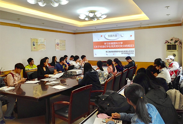 4 月 26 日上午,在该院学生党支部的专题支部大会上,学生党员学习了学校刚刚出台的《关于对违纪学生党员党纪处分的规定》。支部书记由近日国内某高校发生的大学生党员在网上发表辱华言论的典型案例引入,引发全场同学热烈的讨论和深思。接着,她引导广大同学尤其是党员和即将发展的同学更要端正入党动机,深入领会社会主义核心价值观,树立正确的价值取向,做到表里如一、言行一致、理性爱党、务实爱国。全体参会同学纷纷表示,通过学习强化了爱党爱国的情怀和责任意识,今后要进一步补足精神之钙,充分发挥共产党员的先锋模范作用。