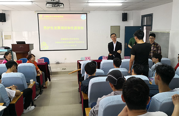 5 月 2 日上午,护理学院为在校男护生们举办了一场以 “专业、进取、发展” 为主题的男护士职业发展现状和生涯规划专题讲座,筑牢男护生们的专业思想。讲座邀请了安徽省护理学会重症监护专业委员会男护士学组的临床一线男护师老师们,护理学院党委副书记沈慧主持会议。