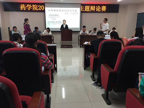 5 月 4 日上午,药学院在 1604 会议室举办了以 “关注心理,关爱生活” 为主题的心理健康辩论赛。年级辅导员、院辩论队成员担任比赛评委,2017 级 100 名学生代表担任大众评审团参与了比赛。