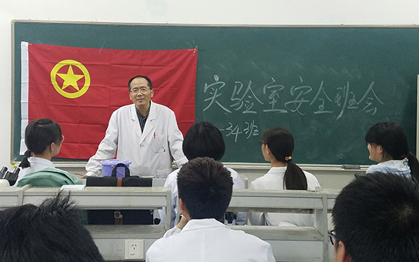 针对 2016 级学生进入二年级后,基础课程实验和科研课题实验较多,学生参与各类实验及接触相关实验器材机会增多的实际,为营造安全和谐文明的学习环境。第二临床医学院在基础医学院形态学实验室开展了实验室安全主题班会。储德勇老师强调了实验室安全的重要性,为同学们详细讲述了实验室安全注意事项,细致讲解了遭遇实验室危急情况下的处理办法。同学们也各自阐述了自己对实验室安全的认识和了解,并与授课老师就实验室安全防范知识进行互动交流。
