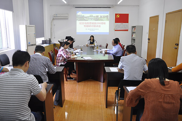 5 月 4 日,该院召开专题研讨座谈会,纪念马克思诞辰 200 周年。该院学生党总支领导、党支部书记、全体辅导员和思政干部 20 余人参加了座谈会。