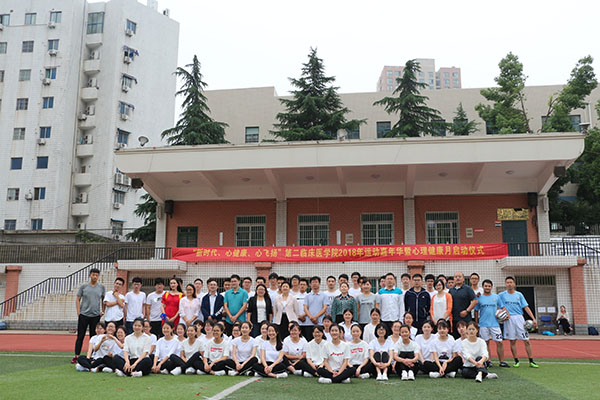 5 月 20 日,第二临床医学院 17 级全体同学在校运动场开展 “新时代,心健康,心飞扬”2018 年运动嘉年华暨心理健康月启动仪式,同学们在运动、呐喊和欢笑中展现青春魅力、释放青春热情。第二临床医学院学生党总支领导及全体辅导员出席开幕式。