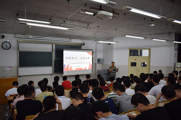 5 月 28 日至 29 日,第二临床医学院召开 “白衣红心、立志强军” 大学生应征入伍动员大会,鼓励大学生积极响应国家应征入伍的号召,携笔从戎,报效祖国。校保卫处王健老师应邀作动员指导,2016 级和 2017 级两名退伍复学同学分别作交流发言,动员会由院学生党总支副书记丁建飞主持。