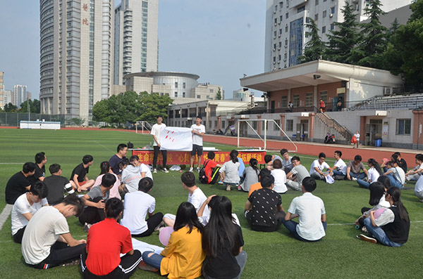 6 月 9 日下午,60 多名学生骨干来了一场心理素质拓展活动,60 人随机编队,信任小游戏让团队加速了解,每支队伍为自己团队设计不一样的队名和形象。“你画我猜”“螃蟹跑”“不倒森林” 等项目考验的是团队默契和集体荣誉感,开朗上进的氛围让同学们乐在其中。