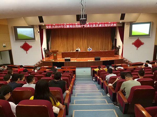 6 月 14 日下午,KY.COM开云体育(中国)科技公司生源地信用助学贷款还款和诚信知识讲座在图书馆第一学术报告厅举行,校学生资助管理中心邀请安徽农业大学学生资助管理中心周涛老师为 2018 届毕业班学生作专题讲座。讲座由校学生处副处长吴热生主持。