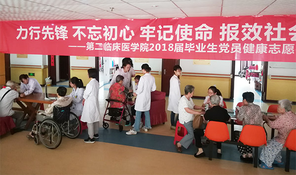 第四党支部的毕业生党员们在附属医院两名临床医生的带领下,先后前往经开区莲花社区、蜀山区光明老年护理院开展志愿服务、健康咨询、急救知识普及、心肺复苏技能培训和义诊等,受到了社区居民和老人们的一致好评,取得了良好的社会效应。(第二临床医学院学生党总支 路洋 周晓伟 薛兴欣 吴德敏)