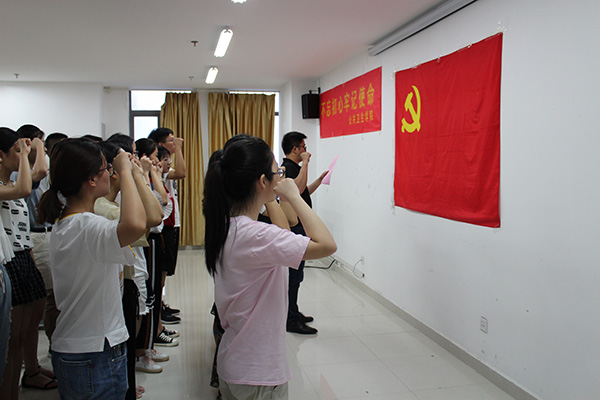 学院组织新发展的预备党员进行入党宣誓,党员们庄重的举起右手,紧握拳头,面对党旗,铿锵有力的宣读誓词内容,用高亢洪亮的宣誓声抒发自己对党忠诚的决心,接受了一次身心的特殊洗礼。新党员们表示将恪守在党旗下的诺言,更加严格要求自己,时刻牢记党的宗旨,进一步增强党性观念,时刻保持共产党员的先进性和先锋模范作用,努力成为一名优秀共产党员。
