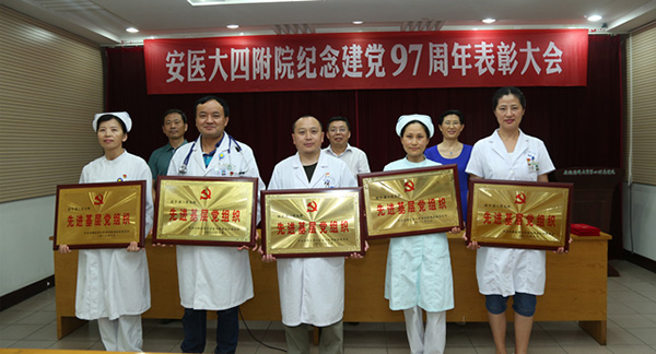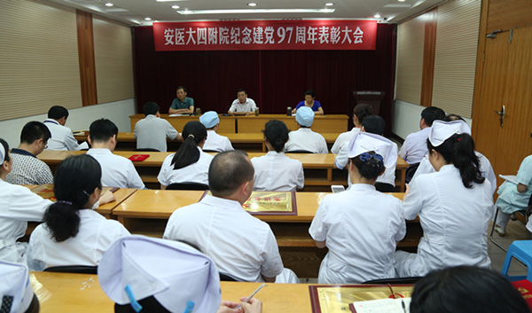6 月 28 日下午,我校第四附属医院召开庆祝建党 97 周年暨 “七一” 表彰大会。该院党委书记王海林发表讲话,党委副书记张锋主持大会,副院长高翠英宣读表彰决定。