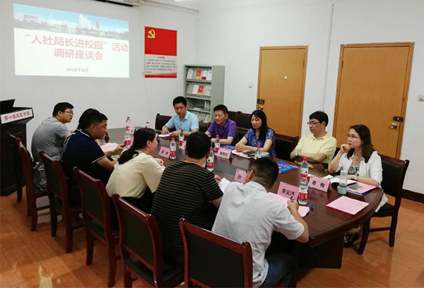 6 月 27 日下午, 蜀山区 “人社局长进校园” 活动——调研座谈会在第一临床医学院召开。合肥市蜀山区人社局副局长郭彬等一行,走进学院为 2018 届毕业生就业创业解读政策、指点迷津。该院党委副书记、学生党总支书记杨秀兰等参加座谈会。