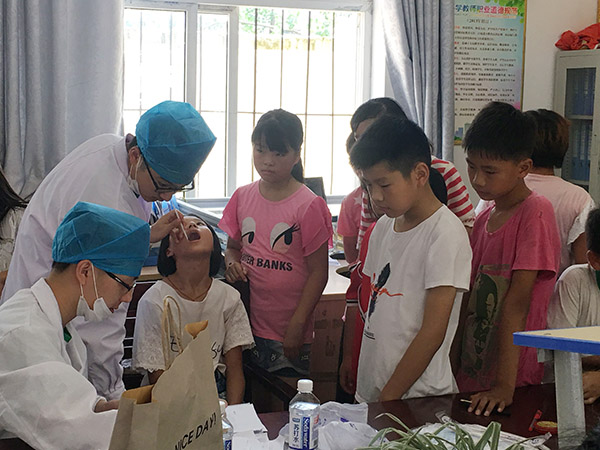 18 日,在口腔医院医生带领下,爱心医疗团队分成两队前往江口镇西园小学和江口小学开展爱心义诊活动。现场,医护人员向孩子们详细讲解口腔保健、牙病预防等方面的知识,仔细地为现场儿童进行口腔检查,耐心地解答孩子及家长提出的问题,有针对性地为孩子提出了口腔保健、治疗建议,亲身示范了巴氏刷牙法,并为每位儿童填写个人资料表、建立儿童口腔健康档案,免费为来就诊的学生发放儿童牙膏,用自己的努力和行动获得了一致认可。
