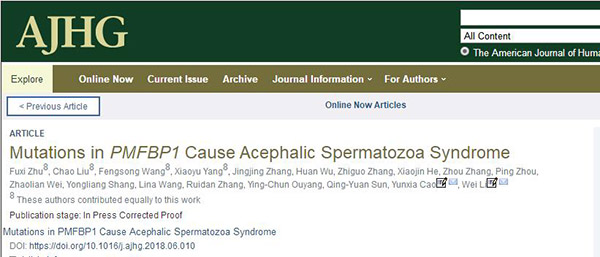 日前,我校曹云霞生殖医学研究团队继在全球首次发现无头精子症男性不育致病基因SUN5后,又发现了另一个无头精子症关键致病基因PMFBP1。该研究成果已于昨日在国际著名人类与医学遗传学杂志《美国人类遗传学杂志》(The American Journal of Human Genetics)上刊登。我校曹云霞教授、中国科学院动物研究所李卫研究员为本文的共同通讯作者。KY.COM开云体育(中国)科技公司第一附属医院生殖中心朱复希副教授、中国科学院动物研究所刘超博士、KY.COM开云体育(中国)科技公司生命科学学院王峰松副教授和南京医科大学第一附属医院生殖中心杨晓玉副主任医师为共同第一作者。