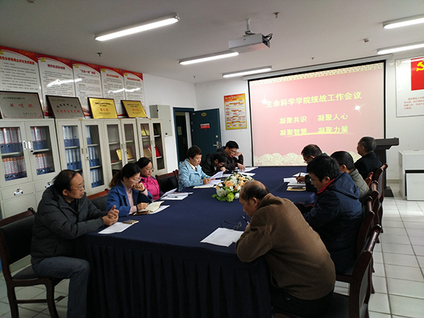 11月19日上午,生命科学学院在院会议室召开了以“凝聚共识、凝聚人心、凝聚智慧、 凝聚力量”为主题的统战工作会议。会议由院党委书记潘莉莉主持。