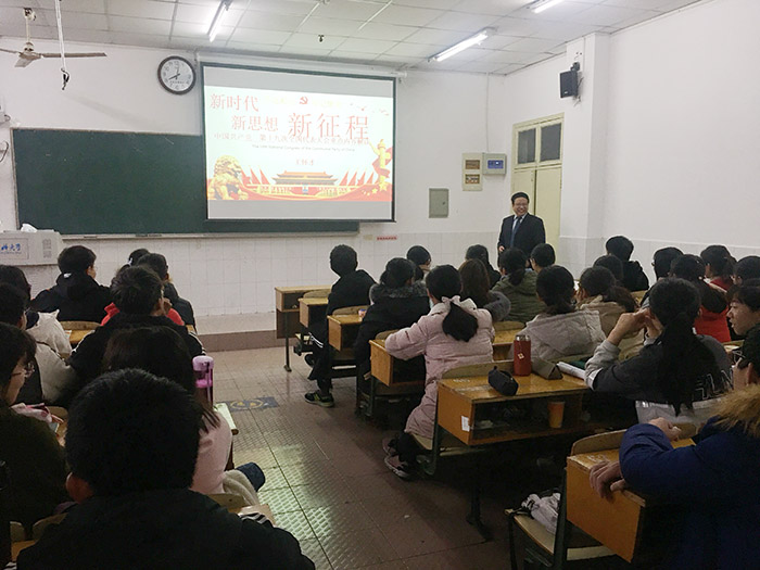 讲座中,王怀才从七个方面深入分析了十九大报告内容,对党的十九大主题和主要成果进行了详细解读,并结合实例,生动形象地描绘了我党过去五年在各领域所取得的开创性成就。本次讲座内容深入浅出,在带给学生启发和教育的同时,也增强了同学们学习的信心和动力。