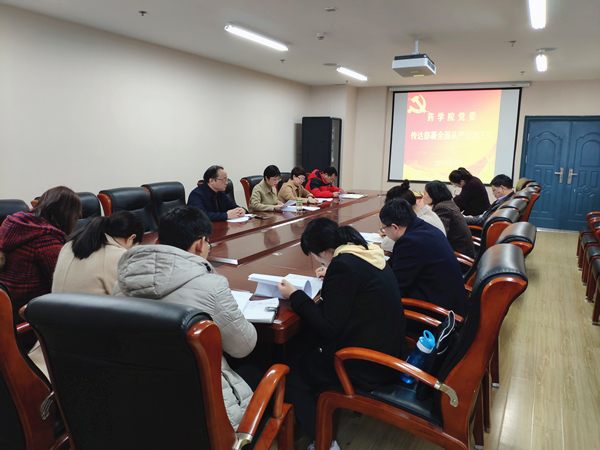 3月13日,药学院党委召开中心组(扩大)会议,传达全省教育系统全面从严治党工作视频会议精神,学习学校全面从严治党工作精神,部署和安排学院2019年全面从严治党工作。