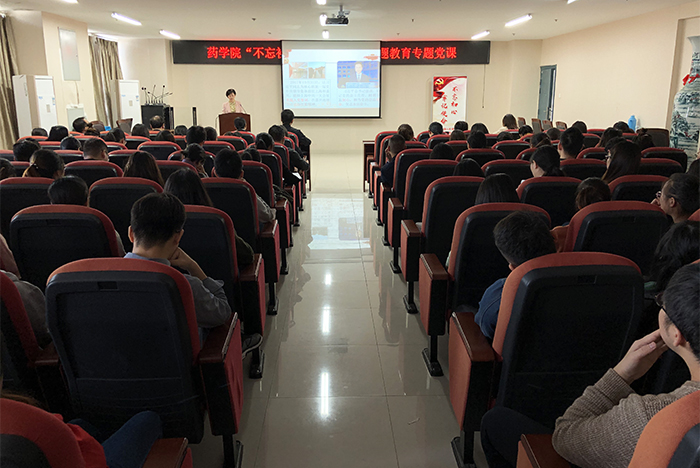 10月30日上午,药学院举办“不忘初心、牢记使命”主题教育专题党课。该院党委书记袁方作题为《守初心 担使命 立足岗位做贡献》党课报告。校主题教育第五联络指导组惠继荣、胡军林到会指导并进行座谈。