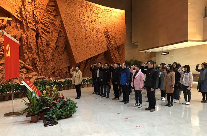 渡江战役纪念馆一楼大厅,面对鲜艳的中国共产党党旗,该院党委书记袁方带领大家重温入党誓词。铿锵有力的宣誓声,表达了“不忘初心、牢记使命”的坚定政治信念和矢志不渝的奋斗信心和决心。
