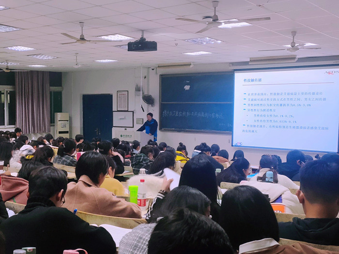 小呼吁中的“大使命”。“医务工作者的使命就是让AIDS患者有尊严、有质量、负责任地活着,帮助他们应对人生困境。”在几乎爆满的可容纳200人的教室里,省疾控艾防科负责人在专题讲座上这样说道。管委会“第二课堂”的上线,有效解决了分团委开展活动“人员荒”的问题。讲座当天,近60名通过该系统招募的志愿者统一佩戴红丝带,在南校区食堂广场前通过签名留言、有奖答题、问卷调查、防艾知识宣讲等方式,开展世界艾滋病日活动,共同呼吁青年大学生在生命问题上自制、自尊、自爱。