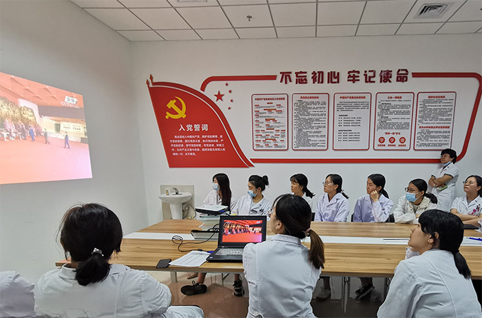 因为有手术安排,第二附属医院整形外科党支部书记李红红利用手术接台间隙,和同事一起观看直播进行学习。“今天是中国人民抗日战争暨世界反法西斯战争胜利75周年纪念日。身处在和平时代的我们,现在的生活没有硝烟,也无须惊恐周围枪声炮鸣,是因为我们的背后,有一个强大的祖国!是不屈不挠的革命先烈用热血缔造的强大祖国!我们缅怀先辈,致敬那场永不妥协的抗争,中华儿女,勿忘国耻!铭记历史,吾辈,当自强!”