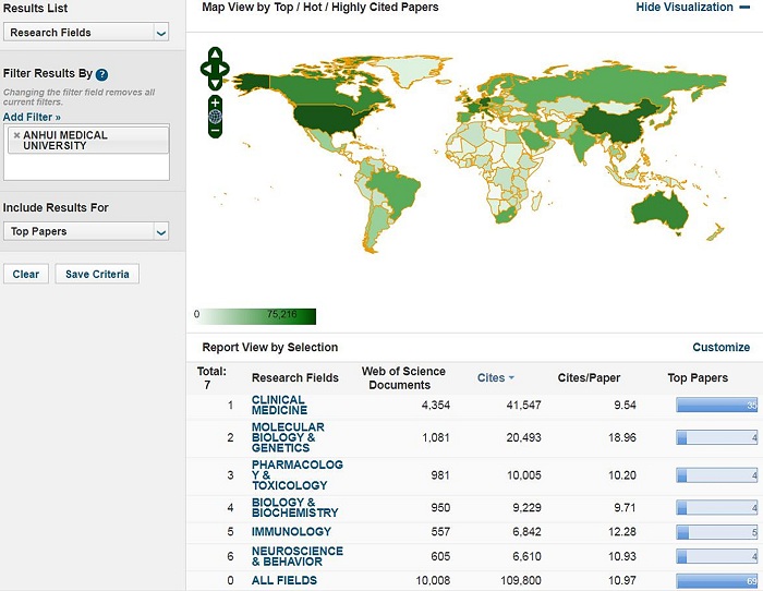 统计数据显示,在本期ESI数据统计区间内,我校共入选SCI/SSCI论文10008篇,总被引频次109800次,篇均被引频次10.97,入选高水平论文69篇(较上期增加8篇),热点论文3篇(临床医学、免疫学、精神病学/心理学各1篇)。神经科学与行为学排名ESI全球前1%的机构数共935个,我校排名第929位,该学科共发表SCI/SSCI论文605篇,总被引频次6610次,篇均被引用10.93次。数据反映了我校神经科学与行为科学学科建设已经步入良性发展期,科研实力和学术影响力显著提高。这是我校学科发展取得的新突破,也是实施学科建设工程的新成果。