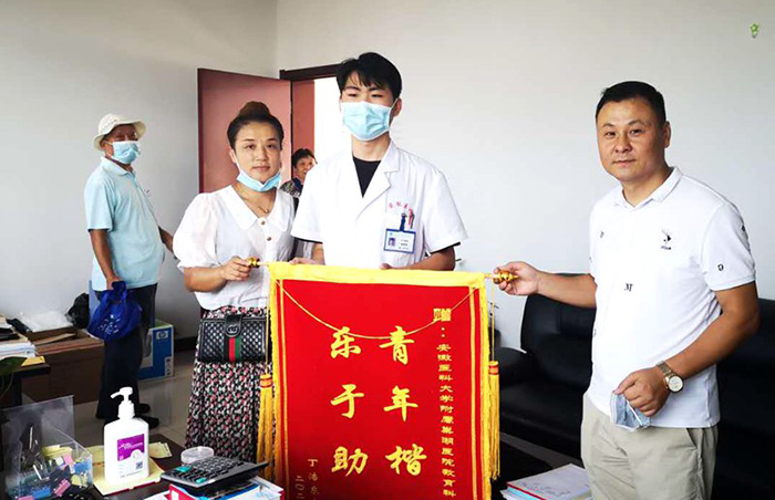 周得洋是该院影像专业的实习学生。8月20日晚上6时左右,巢湖市区狂风大作,暴雨如注。周得洋路过合肥市骨科医院的施工工地时,发现附近学校的一名高中生被狂风掀翻的施工围栏砸伤,便立马予以施救并第一时间将该学生送至医院急诊科。由于事发突然,周得洋在未知患者身份信息的情况下,只简单地询问了姓名后就帮其挂号并垫付检查费用,直到一系列检查结束,患者的亲人来到医院急诊科,他才悄然离开。随后,患者父母通过急诊科找到周得洋的联系信息,向其赠送了锦旗以表示感激和谢意。