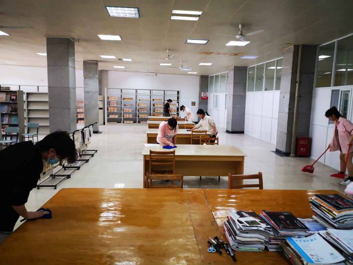 近日,法学院开展了主题为“劳动光荣、奉献最美”为主题的劳动教育实践活动,该院学子利用周末业余时间,在南校区图书馆开展室内外卫生清理等志愿劳动服务。南区图书馆负责人及工作人员指导并参与活动。