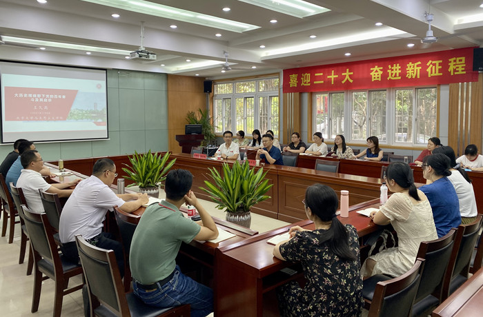 王久高从纵向历史、现实与未来以及横向中国与世界的角度,解读了大历史观的内涵,阐述了运用大历史观正确看待党的百年奋斗历史的重要意义,紧紧围绕“中国共产党是什么、要干什么”这一根本问题,回顾了中国共产党领导人民进行革命、建设、改革发展的光辉历程,剖析了中国共产党自成立以来百年奋斗的重要启示。他强调,要坚持大历史观,用具体历史、客观全面、联系发展的观点来看待党的历史,准确把握党的历史发展的主题主线、主流本质,正确认识和科学评价党史上的重大事件、重要人物等,把握历史发展大势,坚定理想信念,筑牢初心使命。