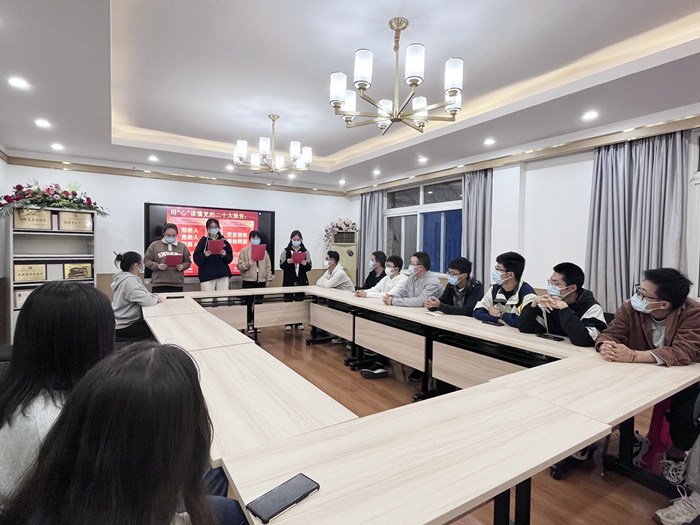 红色经典燃热血,激情奋斗正当时。在做好疫情防控的基础上,该院设立红色影院,通过红色电影展映展播,深度发掘经典红色影片所蕴含的精神力量,以学生喜闻乐见的形式,推动党的二十大精神学习贯彻走深走实、入脑入心。学院还建立“红色”读书角,线下组织学生进行红色书籍分享活动,让大家倾听“红色”声音,流传“红色”故事,以书籍寄予爱国热情,用激情点燃爱党初心。“影片的每一个画面都是惊心动魄的,书籍中的每一句话都牵动着我的神经。百年只是序章,我们新时代青年更要以吾辈之青春,铸华夏之繁荣,要深入学习贯彻党的二十大精神,谱写青春最美的华章。”该院学子感慨道。