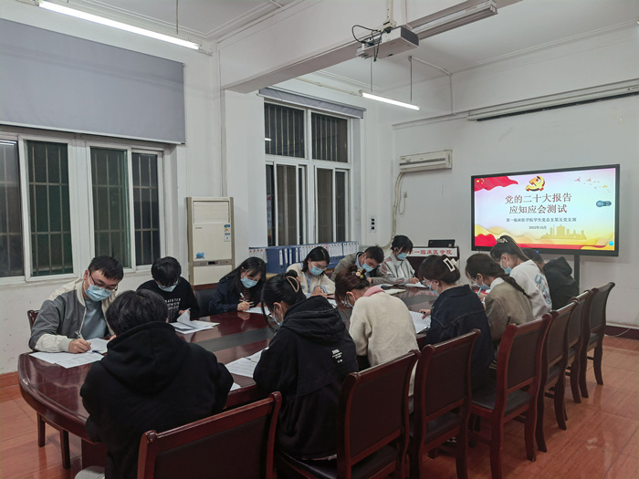 为进一步提高师生学习热情,该院以“领导带头讲、老师身边讲、学生广泛讲”,开展了高质量、全覆盖的理论宣讲。学生党总支班子成员通过专题学习、党课等方式。围绕党的二十大精神进行了深入浅出的宣讲,引导广大师生“跟着学、照着做”。辅导员们将党的二十大精神专题学习带进宿舍、开在操场,师生围坐一圈,分享心得体会。杰出学子们用“接地气、冒热气”的青年话语,在教室中为同伴开展鲜活生动的宣讲,充分发挥榜样示范作用,展现出当代青年蓬勃向上的奋斗姿态;优秀学生党员和入党积极分子踊跃参与录制“二十岁遇上二十大”微宣讲视频,在听课者到讲解者的转变中,提高了党的二十大精神学习宣传贯彻的生动性和覆盖面。2021级临床医学学生张晓慧说道:“正如习近平总书记所说,当代中国青年生逢其时,施展才干的舞台无比广阔,实现梦想的前景无比光明。作为一名医学专业的学生,唯有勤奋学习、刻苦钻研、独立思考、提出见解,把志存高远的理想和脚踏实地的学习结合起来,才能不负大好青春,为中华民族的伟大复兴贡献自己的一份力量。”