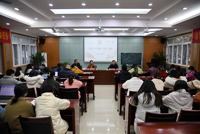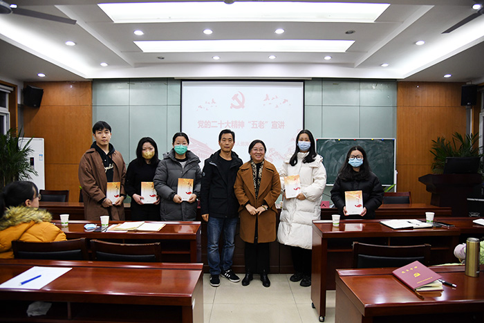 12月2日下午,校党委宣传部与马克思主义学院师生党员开展党的二十大精神主题学习活动,校“五老”宣讲团成员、退休干部陈海燕应邀作题为《认真学习宣传贯彻党的二十大精神,做社会主义核心价值观的践行者》的专题报告。报告会由宣传部常务副部长惠继荣主持,马克思主义学院党委副书记、院长柳泽民出席活动。