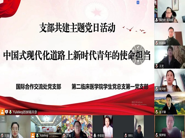 活动中,师生以“中国式现代化道路上新时代青年的使命担当”为主题开展研讨,活动氛围热烈。第二临床医学院第一党支部学生代表分享了学习和生活的感悟,国际合作交流处党支部的老师还就学生关心的国际交流方面的问题给予了解答和指导。