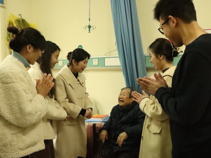 马毛姐是解放战争时期支前英模的杰出代表,闻名全国的“渡江英雄”,“七一勋章”获得者。“送解放军过江的时候我们好小,才十几岁。”在西园街道社区卫生服务中心,该院学生党总支第二党支部的学生党员围坐在马毛姐身旁,认真聆听“渡江英雄”讲述红色故事。渡江战役中,年仅14岁的马毛姐参加“渡江突击队”,在手臂中弹的情况下依然咬牙坚持,不畏枪林弹雨6次横渡长江,运送3批解放军成功登岸。