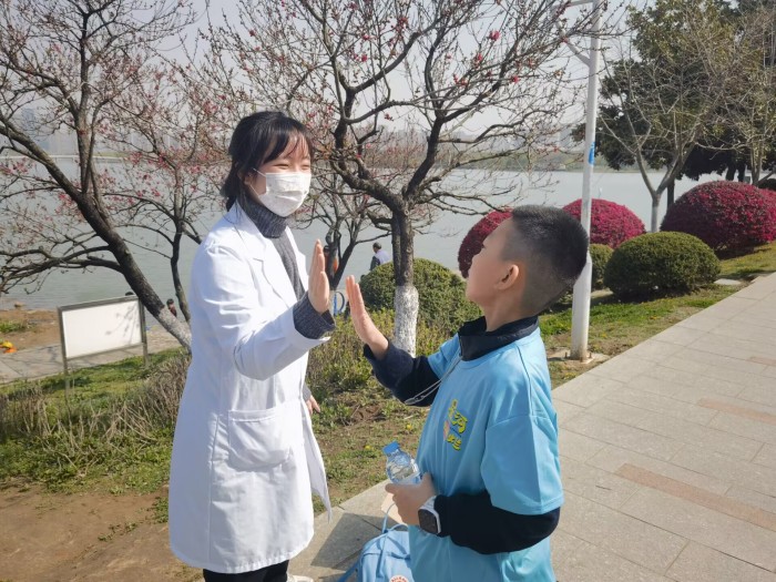 用陪伴的方式保护你。该院学生志愿者还在翡翠湖公园为“春雨·星河迷你马拉松公益活动”提供爱心关怀和急救保障服务。活动过程中,志愿者全程关注孩子们的身体状况,及时让他们补充水分、适当休息,并击掌以鼓励孩子们继续前行。活动结束后,志愿者还与工作人员一起整理场地,清理垃圾。整个活动过程顺利且温馨,该院学生专业且温暖的行动也赢得了主办方和家长的一众好评。