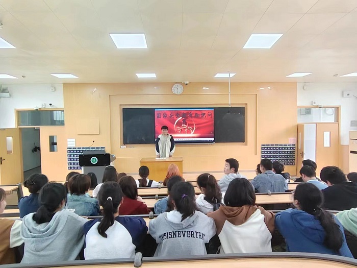 专题讲座,谱写安全“主打歌”。学院开展“与法同行,‘典’亮人生”专题讲座,邀请卫生管理学院副教授李涛为学生开展普法教育。他用生动的语言和典型案例,引导学生知晓国家安全法、民法典等国家法律法规,明晰大学生关于国家安全的权利与义务,并提醒同学们要提升安全意识,共同维护国家安全。该院还组织学生观看了国家安全警示教育片《领航》和保密公益宣传片《藏在照片里的秘密》,引导学生牢固树立“国家利益高于一切,保守秘密人人有责”的观念意识,养成良好的学习和用网习惯,提升保密水平。
