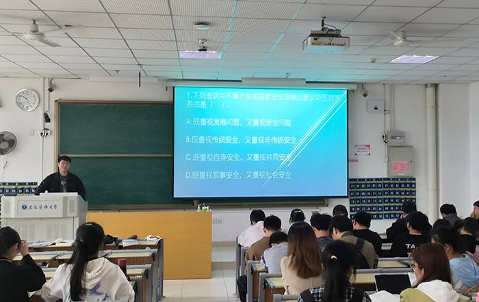 知识竞赛鼓励深入“思”。4月15日,第八个全民国家安全教育日当天,该院以坚持总体国家安全观为指导思想,围绕国家安全相关法律法规,开展了国家安全教育主题知识竞赛,以赛促学,铸牢学子国家安全意识。竞赛现场同学们热情高涨,踊跃答题。比赛结束评选出优秀奖若干并进行了颁奖。活动不仅调动该院学子学习国家安全知识的主动性,提升了其对国家安全相关知识的掌握水平,也为加强校园日常安全教育提供了助力。